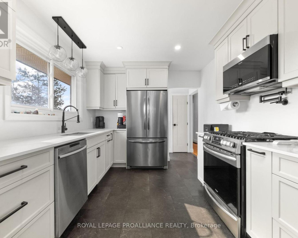 Enjoy the many perks of rural living within minutes to town amenities. Introducing 206 Elmwood Drive. Impressive curb appeal @ this all brick beauty with metal roof & massive freshly sealed drive. The established perennial garden lined path to the spacious front deck invites you into the entry with convenient coat closet storage to the original hardwood flooring throughout. Bright bay window in the living & fireplace with trending surround feature is open to the dining space, large enough to accommodate a harvest table. Stunning custom kitchen with neutral cabinetry to ceiling, under valance lighting & durable dekton countertops. Bonus, the stainless steel appliances are included. Coordinating lighting from the dining combined with pot lights & functional pantry closet. Three bedrooms on this main level nicely accommodates growing family living + a full bath with updated vanity. Additional living space in the fully finished basement providing a comfortable rec room with newer carpet & included built in TV media centre for your entertaining enjoyment. Laminate flooring through the remaining space offering two great flex rooms, you decide the use. One currently functioning as an office & the other with the window as a gym with cabinetry storage & bar fridge. Laundry, 2 piece bath & large utility room with workshop option here as well. Step out the back door to your interlocking patio with gas BBQ connection, raised vegetable gardens, in-ground dog fencing & new septic bed open to natural nature beyond. Good news, the grass has grown. The 323 sq ft garage provides even more functional storage at this country charmer, surrounded by mature red maple, pines, cedars & lilac trees. You’re invited to view this wonderfully updated home on desirable Elmwood Drive. Enjoy the video walkthrough.